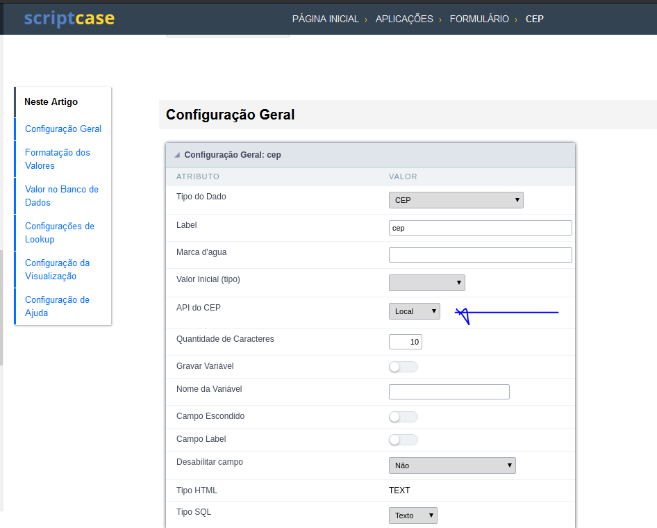 Não achei isto no meu campo CEP.