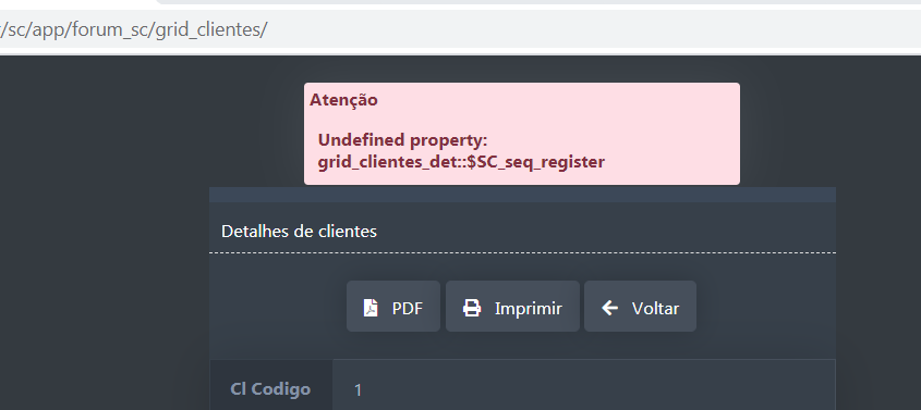 Ao utilizar a macro {sc_seq_register} no evento onrecord (não testei em outros lugares) ao clicar em … para mostrar detalhe causa mensagem de atenção conforme imagem: