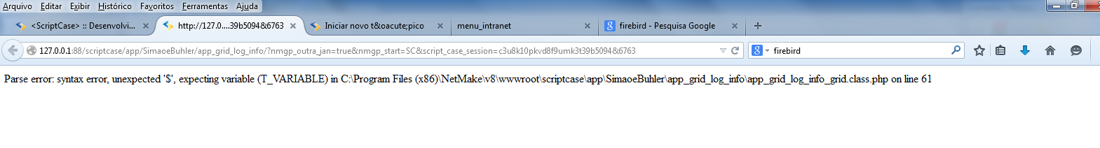 Ao utilizar a função Criar grid com relatório de log, nome da grid app_grid_log_info, o scriptcase cria no arquivo app_grid_log_info_grid.class.php uma variável vazia.