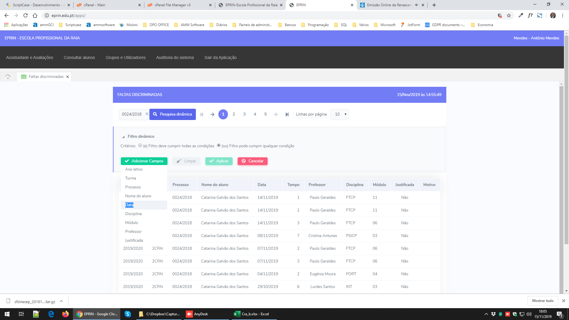 Criei um filtro dinâmico numa consulta que funciona perfeitamente em modo de desenvolvimento (scriptcase a correr no scriptcase.host) Imagem1 e Imagem2.