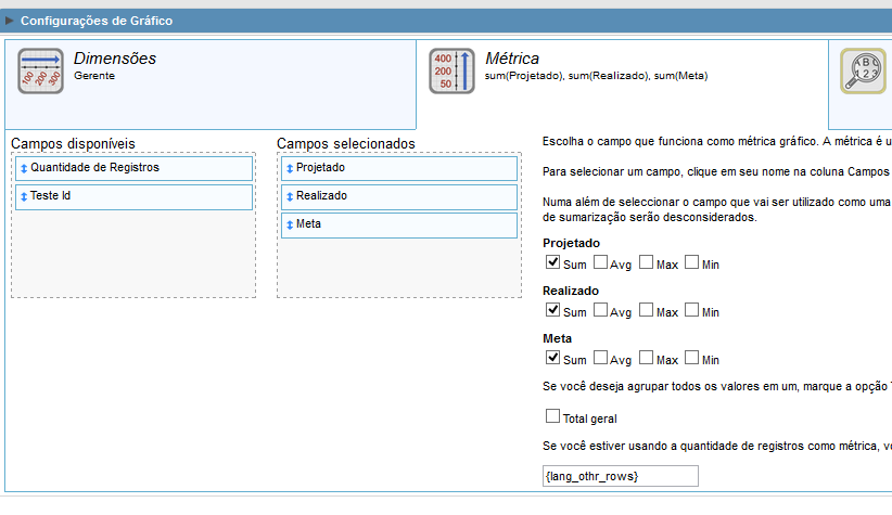 E vejam o resultado. Mesmo definindo 3 métricas, o resultado é gerado uma métrica em cada gráfico, ou seja, ao gerar a página, gera 3 gráficos. Eu gostaria que todas as séries fossem plotadas num único gráfico.