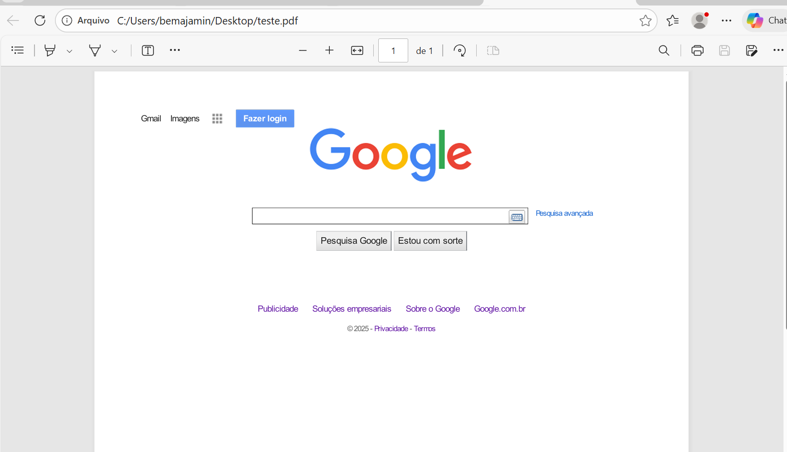 olá, um teste wkhtmltopdf.exe https://www.google.com teste.pdf ele criou
