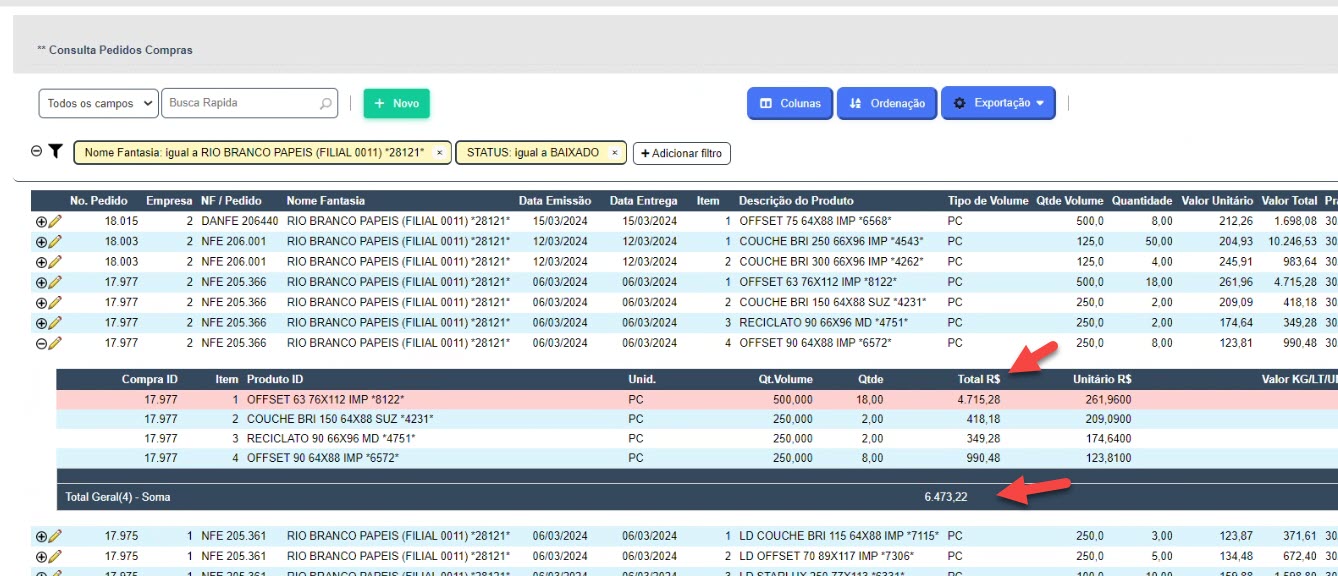 No Grid - consulta quando selecionamos para ele fazer a Totalização de um Campo,