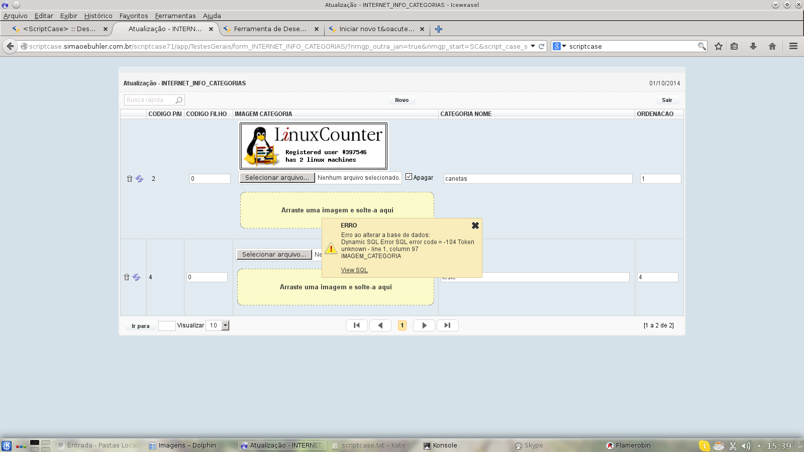Agora se marco para apagar a imagem e dou atualizar acontece o erro.