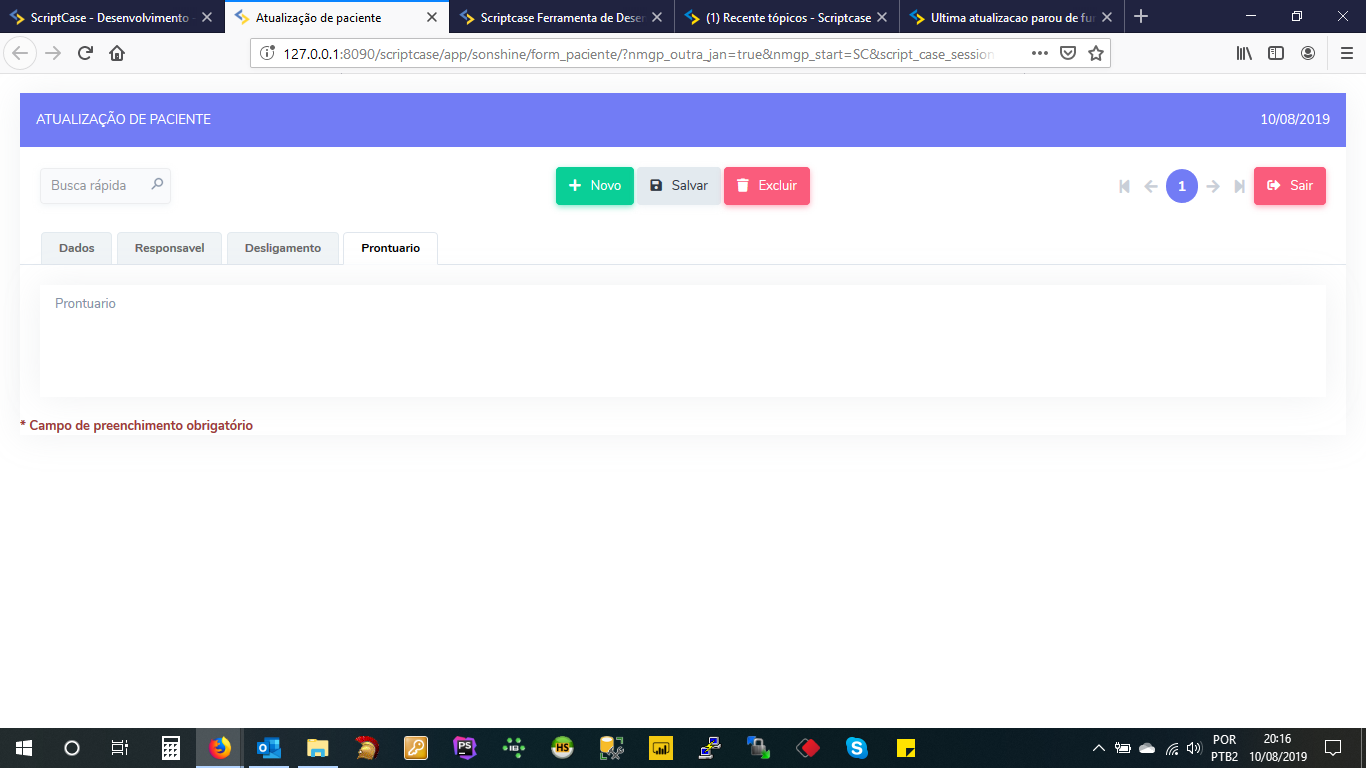 Apague tudo que tiver na pasta ‘scriptcase’ \app e \tmp, limpe o cache do navegador,